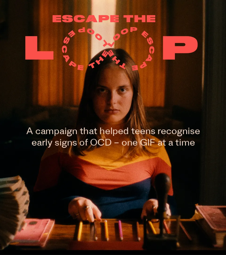 From the insight that youths often use GIFs to express a feeling or emotion, combined with the fact that a GIF per definition is a repetitive loop, the GIPHY- based campaign “Escape the Loop” was created, in collaboration with the International OCD Foundation.